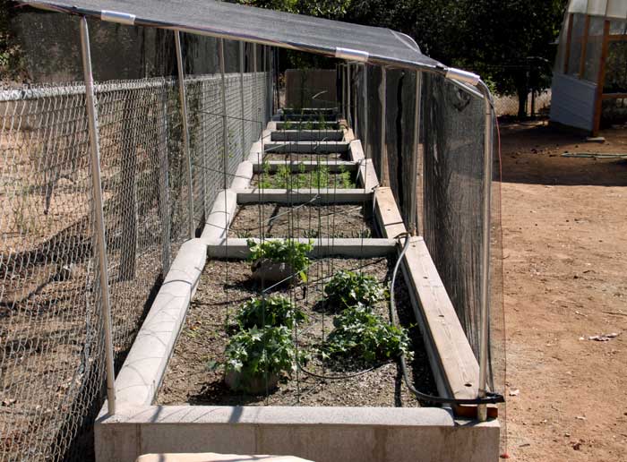 Below, most of the eight ground beds are planted now and the new residents are all doing quite well, thank you! Petra installed a drip watering system so that the beds can be watered simultaneously. Eventually, we'll automate all of this with timers.