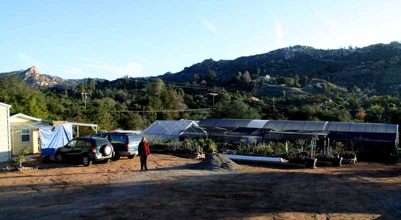 An overview of the property showing the shade cloth in place on the new structures. Our next project is to finish the fences along our entire street frontage and securitize them as best we can.