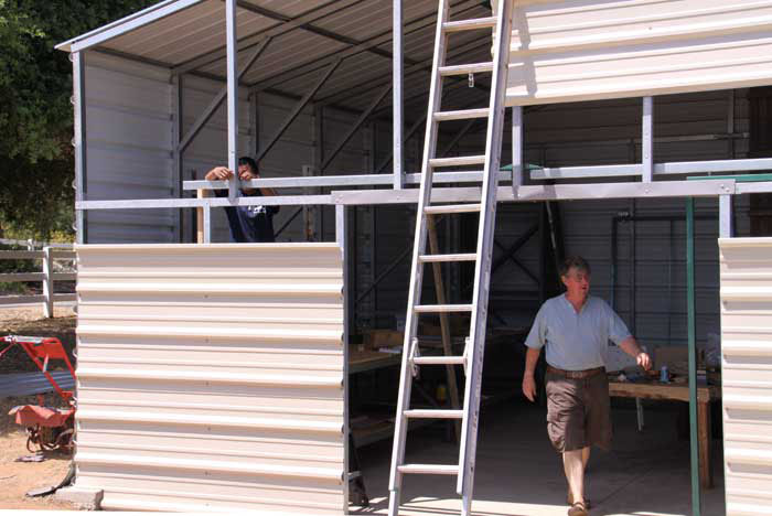 Here, Paul and Lorenzo are working on the sliding doors to the shed.