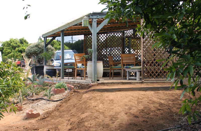 There have been many small improvements around the patio, including a retaining wall and drainage spillway to deal with the runoff from the patio roof. Now we're waiting for those hot summer evenings when lounging out here is a real pleasure.