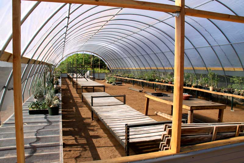 Over the last two weeks, the structural work progressed to point where we could begin moving plants in. The north shade house, which is being used as a staging area, was quickly filled to overflowing.