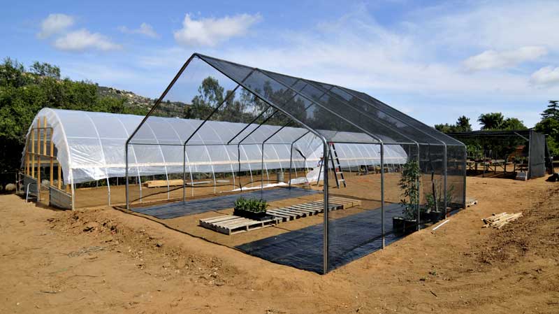 We also completed another 20'x20' shade house- with 30% shade cloth. It will initially serve a second staging area as we transfer plants to the new greenhouse.