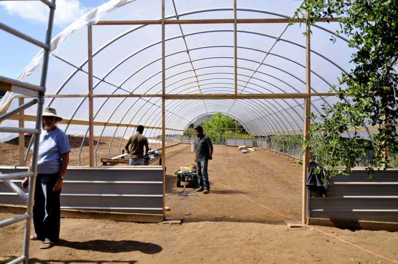 Petra with Lorenzo and Raoul. As soon as the poly was up, the temperature inside went up about 20° F.
