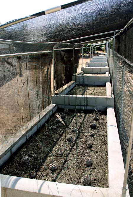 Ground beds seem to evoke almost magical powers for plant people. Petra was so anxious to get plants in her new beds that she got on it as soon as I had finished putting up the superstructure. The beds were leveled, wire cloth laid across the bottom, special dirt ordered and loaded into the beds and shade cloth stretched across the frame. Unfortunately, she ran out of time and was able to get only one bed planted before our weekly sojourn ended. It's a safe bet what she's going to be doing down on the farm first thing this week!