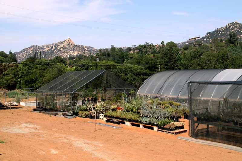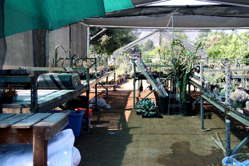 Petra's work area (for potting, etc.) at the south end of the shade structure level is now pretty much set up. She added an extra layer of shade cloth to protect against the unremitting rays of the sun. We brought an extension cord up from the south end of the greenhouse, so she can now plug in a fan (mostly to keep the nasty gnats at bay) and her satellite radio. She's all set!
